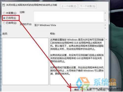 解決方法:在運(yùn)行中輸入 Gpedit.msc 回車—— 在【計(jì)算機(jī)配置】——【管理模板】——【系統(tǒng)】——【關(guān)機(jī)選項(xiàng)】下,將“關(guān)閉會(huì)阻止或取消關(guān)機(jī)的應(yīng)用程序的自動(dòng)終止功能”設(shè)置為已啟用。如下圖: