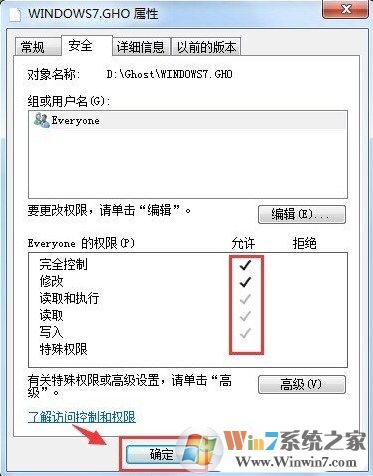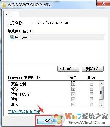 6、這時(shí)會(huì)看到這個(gè)窗口中,“完全控制”后面已經(jīng)有了“√”了,確定,繼續(xù)。