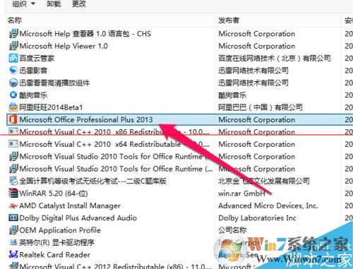 2、在程序列表中找到office 2013,然后”右鍵“選擇”更改“