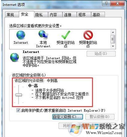 2、點(diǎn)擊“安全”進(jìn)入“Internet”點(diǎn)擊“自定義級(jí)別”。