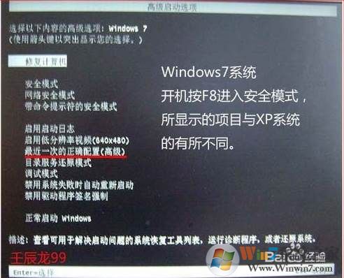 6、開機(jī),按F8進(jìn)入安全模式,可見如下圖所示。