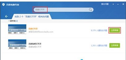 二、使用百度電腦官家的朋友也是一樣,在百度電腦官家中輸入網頁打不開,也有相應的解決功能