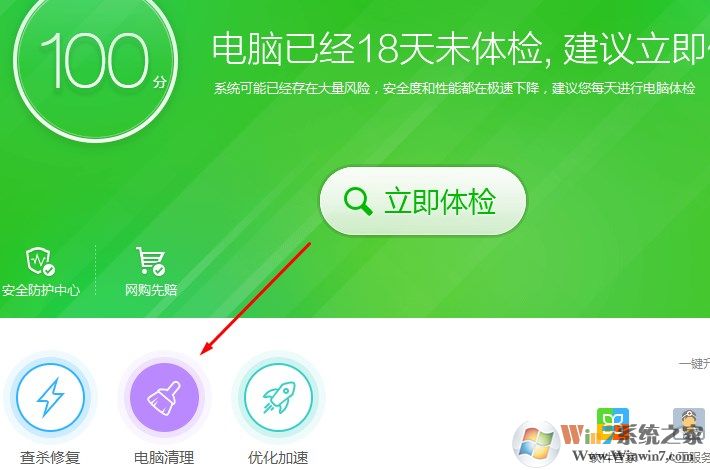 1、打開電腦安裝的安全軟件(這里以360為例),點擊“電腦清理”。