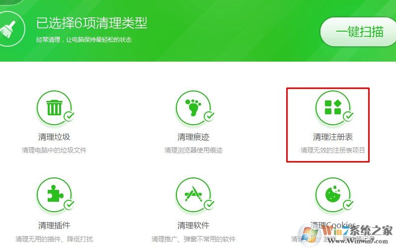 2、進入后找到“清理注冊表”這項,然后在這項上打上勾。