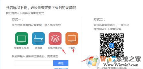 這時(shí)會(huì)彈出網(wǎng)頁(yè),進(jìn)入個(gè)人的迅雷下載中心,提示兩種綁定方式,我可沒有什么盒子之類的,還是選擇電腦吧。