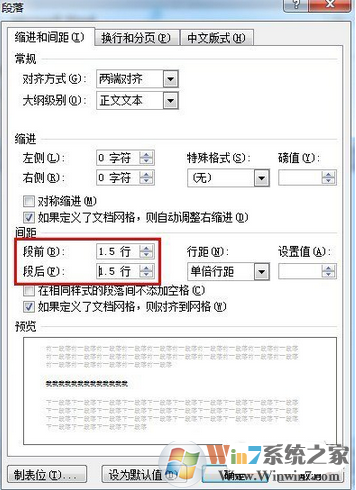 在間距下單擊段前和段后的三角按鈕來調(diào)整行間距