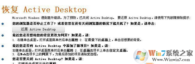 1、可以單擊顯示的“還原Active Desktop”,有大概會恢復(fù),但依然會顯示,也有大概會發(fā)生錯誤