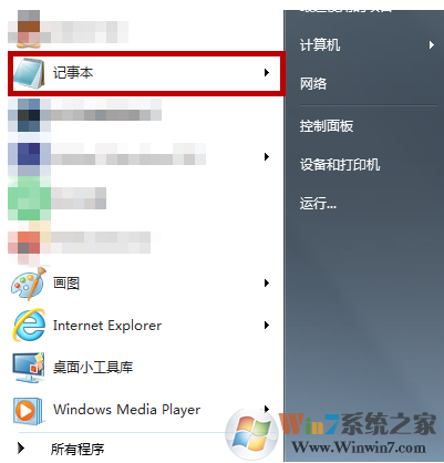 1、點(diǎn)擊“開(kāi)始”,單擊打開(kāi)“記事本”程序。