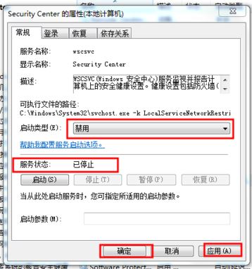 3、雙擊 將其停止并且禁用掉 然后點擊【應(yīng)用】--》【確定】按鈕保存設(shè)置即可!
