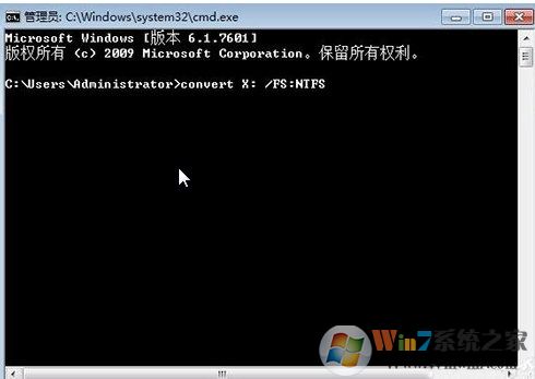 2、輸入命令行:convert x: /fs:ntfs (注意:x代表您文件夾所在的那個(gè)盤符,比如你是d盤的文件夾文件夾屬性沒有安全選項(xiàng),那么就輸入 convert d: /fs:ntfs ) 輸入命令行后,回車即可。等系統(tǒng)轉(zhuǎn)換完成后,請重啟電腦。如圖所示: