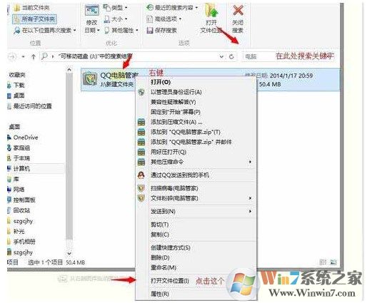 2、打開U盤后 我們?nèi)绻浀肬盤內(nèi)文件名的關(guān)鍵字,可以用搜索功能