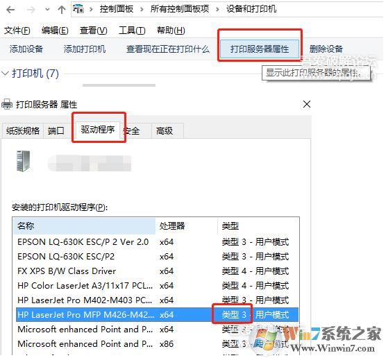 最近遇到這種問(wèn)題,解決方法如下:首先去做共享的WIN10系統(tǒng)上檢查打印機(jī)的驅(qū)動(dòng),在設(shè)備和打印機(jī)里面點(diǎn)擊共享的打印機(jī),上面會(huì)出來(lái)打印服務(wù)器屬性,查看打印機(jī)所用的驅(qū)動(dòng)類型,HP的有類型3和類型4,我遇到是WIN10裝的類型4的驅(qū)動(dòng),共享給WIN7會(huì)出現(xiàn)錯(cuò)誤,把WIN10電腦上的驅(qū)動(dòng)換成類型3的就可以共享了,如果有32位的電腦需要打印,在這里再添加X(jué)86同類型的驅(qū)動(dòng)就可以了。