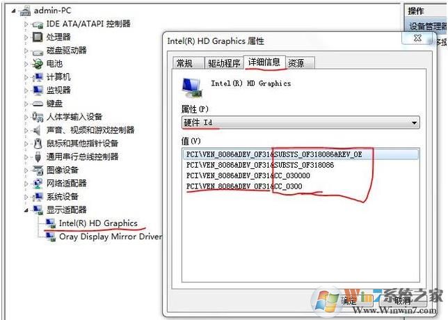 3.打開設備管理器,右擊需要安裝的顯卡,點擊屬性,點擊詳細信息。屬性點擊下拉,選擇硬件ID。