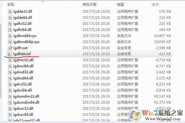 5.解壓驅動包,找到驅動目錄下的igdlh64.inf文件,路徑:“X:\XXX\Intel Graphic 21.20.16.4678 Win7\Graphics\igdlh64.inf”。