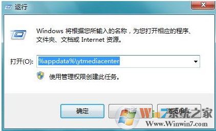 2、復(fù)制如下代碼:%appdata%\ytmediacenter,點擊確定,如圖: