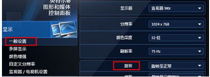 2、來到這個程序界面,默認的就是顯示欄,然后下面有一個一般設置,我們可以在右邊看到旋轉(zhuǎn)屏幕的選項;