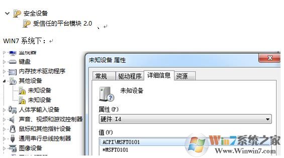 通過查詢硬件ID該硬件為Intel PTT TPM 2.0,而win7系統(tǒng)本身不支持TPM 2.0。
