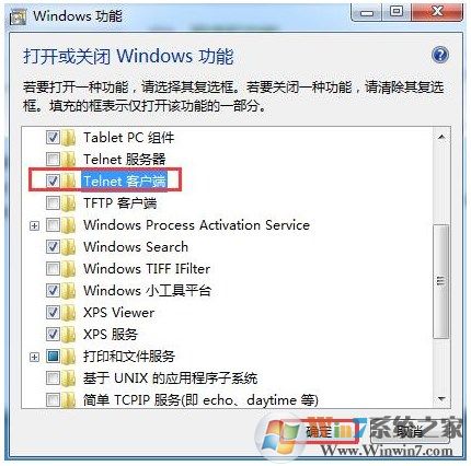 3、在“打開或關(guān)閉Windows功能”界面中,找到并勾選自己需要添加的windows組件,點(diǎn)擊“確定”便可,如下圖所示: