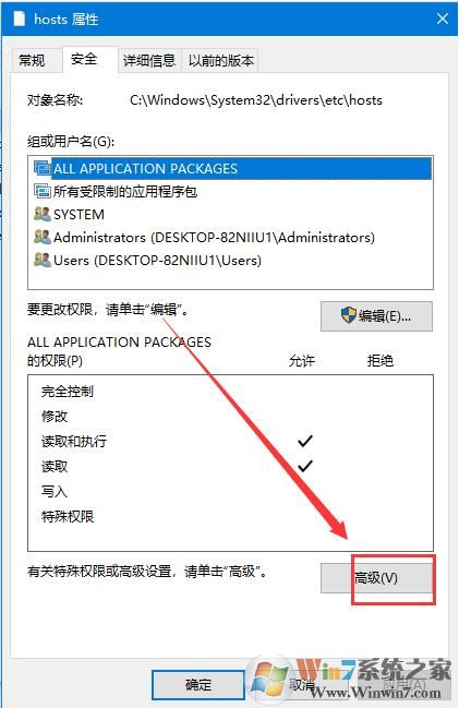 2.點擊hosts屬性對話框里的“高級”,如下圖所示。