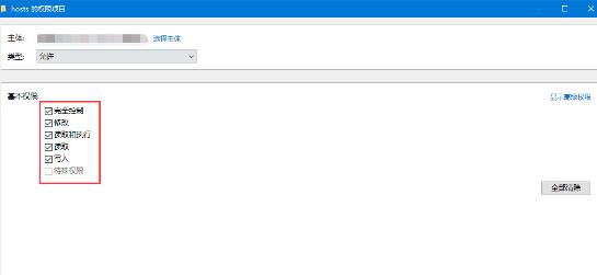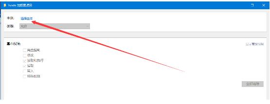 6.在選擇用戶或組界面里點擊確定,將hosts的權限項目界面下的基本權限的所以項目都勾選上,然后點擊確定,如下圖所示。