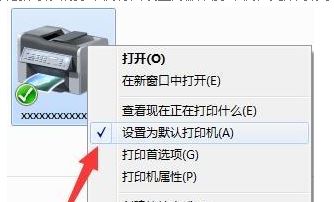 9、回到打印機(jī)設(shè)備面板,右鍵新添加的打印機(jī)將其設(shè)置為默認(rèn)打印機(jī),完成添加操作。