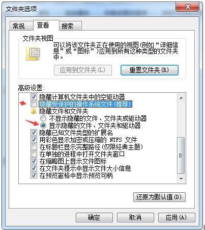 1、首先由于這個(gè)配置文件是隱藏的,我們要先設(shè)置系統(tǒng)顯示隱藏文件和系統(tǒng)文件:如下圖(Win7為例)打開文件夾選項(xiàng),然后取消勾選,隱藏受保護(hù)的操作系統(tǒng)文件,和選擇 顯示隱藏的文件、文件夾和驅(qū)動(dòng)器。具體步驟:win7如何顯示隱藏文件和文件夾?