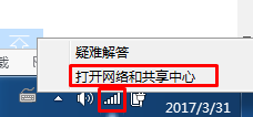 1、任務欄右下角右鍵網(wǎng)絡圖標,然后點擊“打開網(wǎng)絡和共享中心”;