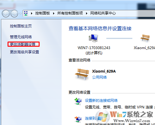 2、在網(wǎng)絡窗口左側點擊“更改適配器設置”;