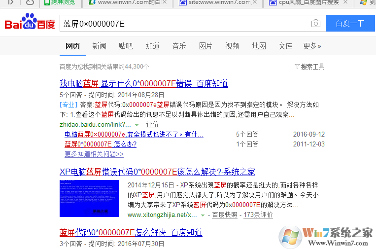 6、然后在百度輸入相應(yīng)的代碼,就會(huì)出現(xiàn)你想要的解決方法了,例如代碼0×0000007E ,我們只需輸入藍(lán)屏0×0000007E 即可