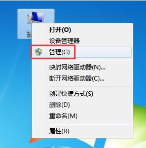 1. 右鍵點(diǎn)擊桌面上的“計算機(jī)”圖標(biāo),在右鍵菜單中點(diǎn)擊“管理”: