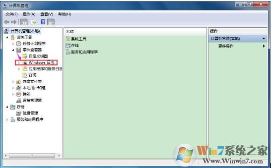 2. 接下來在左側(cè)點(diǎn)擊“事件查看器”,然后點(diǎn)擊“Windows日志”: