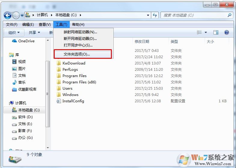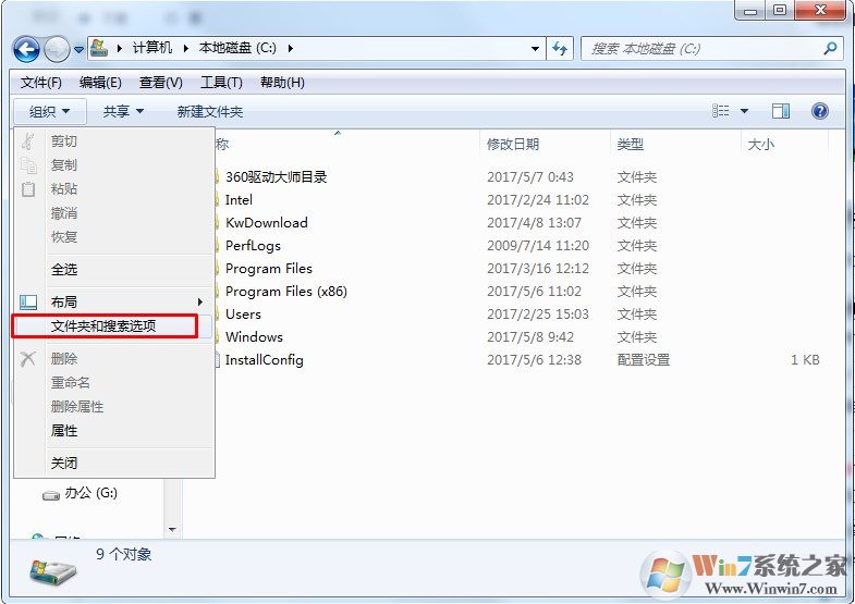 2、在組織和工具中找到文件夾選項打開