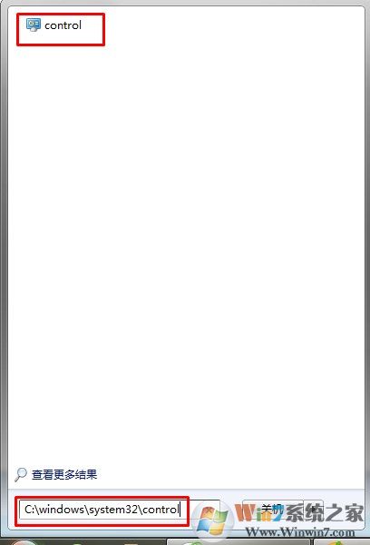 打開開始菜單,搜索輸入C:\windows\system32\control或者輸入控制面板即可