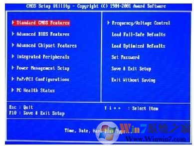 Standard CMOS Features(標(biāo)準(zhǔn)CMOS功能設(shè)置):使用此選項(xiàng)可對(duì)基本的系統(tǒng)配置進(jìn)行設(shè)定,如時(shí)間、日期、IDE設(shè)備和軟驅(qū)參數(shù)等。