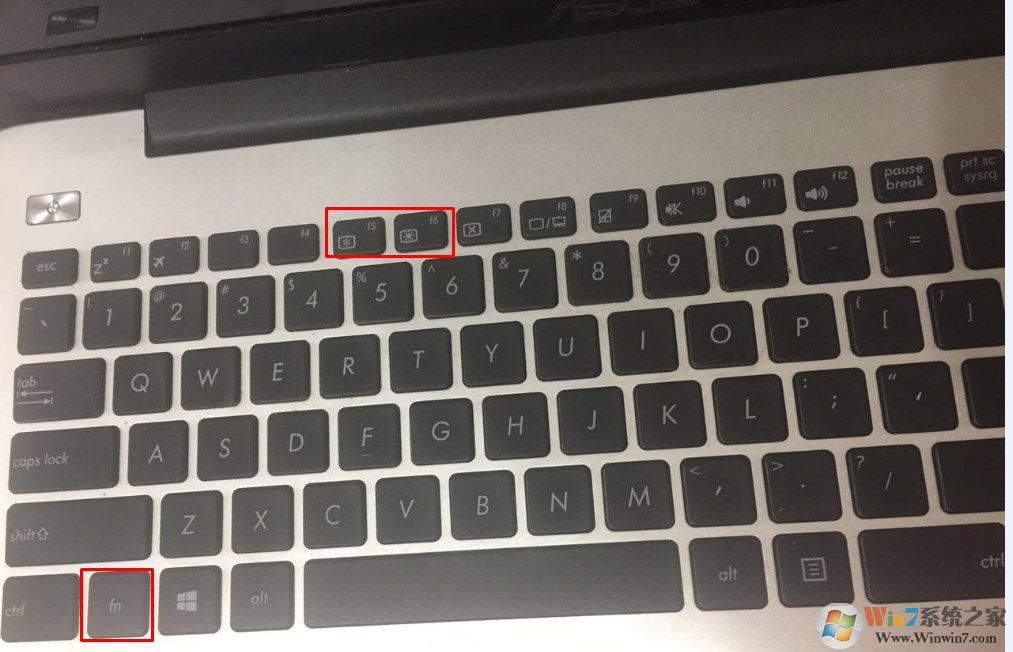 使用筆記本鍵盤來操作完成即可,不同的牌子按鈕是不一樣的,下面小編就以自己的華碩筆記本為例子,小編的 FN+F5或者F6調(diào)節(jié),其他的牌子自己從F1到F10找找?guī)柕男酥揪褪橇?br />