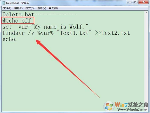 5、BAT中的關(guān)閉回顯語句@echo off,如下所示。