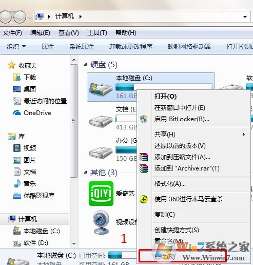 2、打開(kāi)計(jì)算機(jī)、右鍵C盤(pán)選擇磁盤(pán)清理
