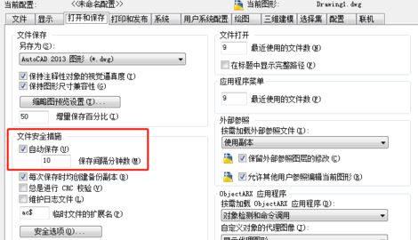 2、點(diǎn)擊“選項(xiàng)”,在出現(xiàn)的對(duì)話框中找到“打開(kāi)與保存”,在打開(kāi)與保存對(duì)話框中,在“文件安全措施”下方的“自動(dòng)保存"方框中勾選,并將時(shí)間設(shè)置為5-10分鐘,如圖: