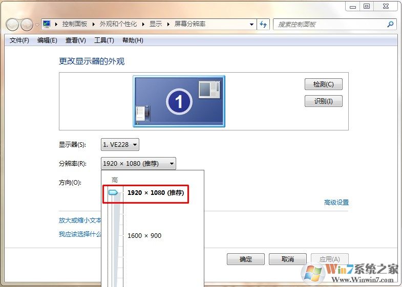 2、將分辨率調(diào)到系統(tǒng)推薦的位置