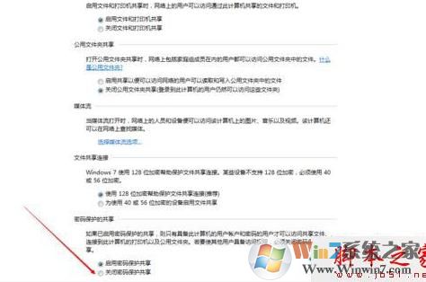 5、在密碼保護(hù)共享這里,選中關(guān)閉密碼;