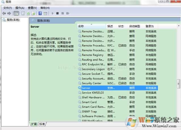 依次點(diǎn)擊“開(kāi)始”,“運(yùn)行”,輸入services.msc,進(jìn)入服務(wù)管理控制臺(tái)。然后,找到server服務(wù),雙擊進(jìn)入管理控制頁(yè)面。把這個(gè)
