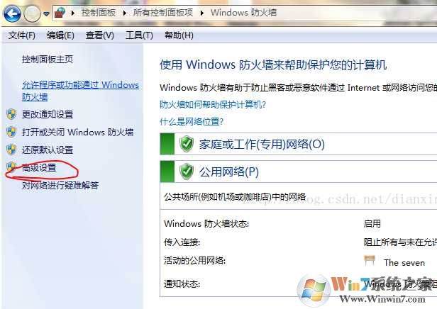 1、通過防火墻可以直接關(guān)閉的,很簡(jiǎn)單,在控制面板的“Windows 防火墻”頁(yè)面左側(cè)找到“高級(jí)設(shè)置”打開。