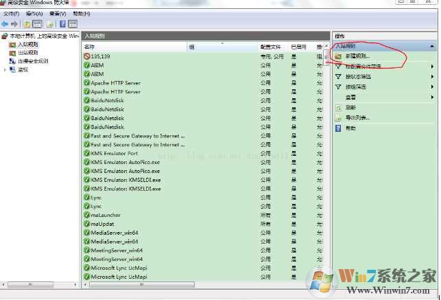 2、在“高級(jí)安全 windows 防火墻”頁(yè)面 左側(cè) 找到 “入站規(guī)則”右鍵點(diǎn)擊“新建規(guī)則”。