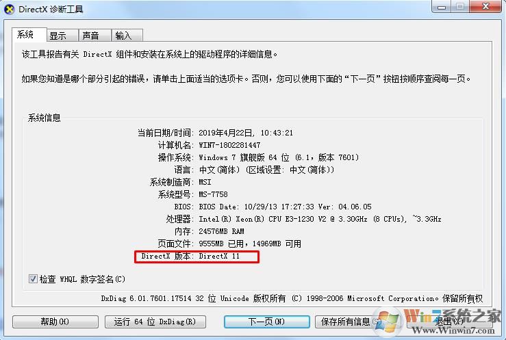 第五步:安裝完成后,建議重新啟動電腦,然后在運行里 使用dxdiag命令查看DX11是否安裝完成。