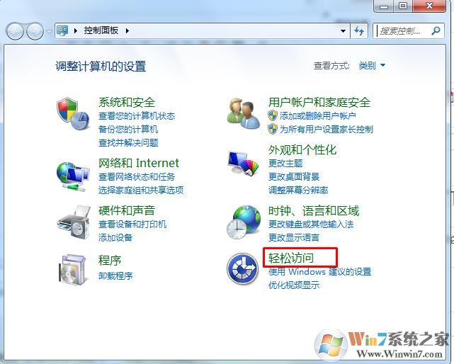 2、打開控制面板以后,我們再點擊【輕松訪問】這個選項。
