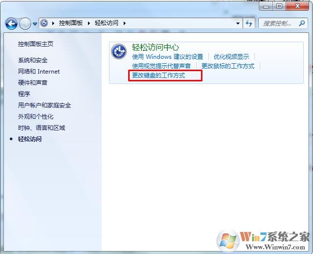3、點擊更改鍵盤的工作方式這個選項;