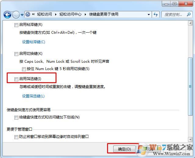 4、然后我們可以找到,啟用篩選鍵 這個選項,取消勾選后,確定。