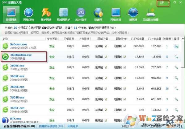 b.接著就是在“已添加的功能”中打開(kāi)流量防火 墻,這個(gè)時(shí)候我們看到流量防火墻中有一個(gè)360kuaikan.exe這個(gè)就是視頻快看哦!