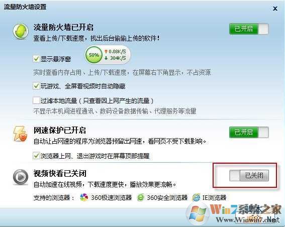 注意:360視頻快看功能目前只支持360極速瀏覽器、360安全瀏覽器和ie瀏覽器。