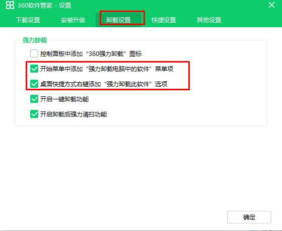 3、在卸載設置中,取消勾選“桌面快捷方式右鍵添加“強力卸載此軟件”選項;